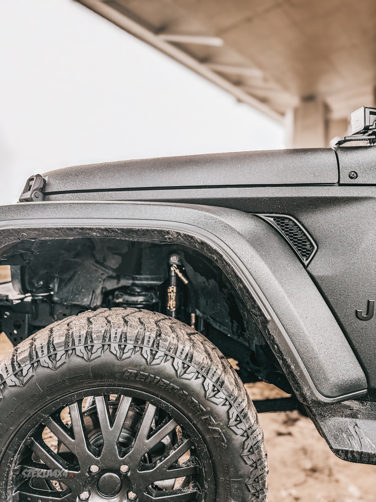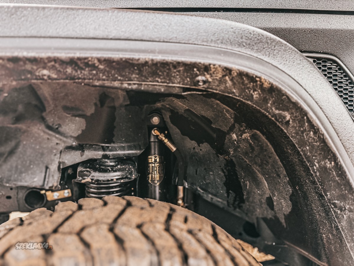 Metalcloak Black w Jeep Wrangler JLU to nowy poziom komfortu i kontroli. Przetestowane przez Szekla4x4.plamortyzatory w połączeniu ze sprężynami, regulowanymi panhardami i wahaczami Metalcloak oferują świetne wybieranie nierówności, wysoką stabilność i idealny balans między codzienną jazdą a szybkim off-roadem – wszystko w bardzo rozsądnym stosunku ceny do możliwości.
